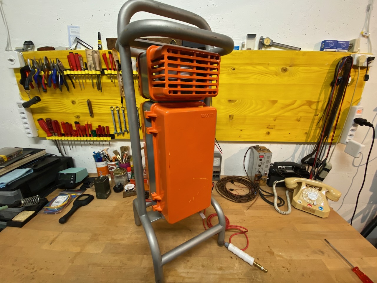 This railway linemen telephone was made by "Ascom" (Fusion of former Swiss Telecom equipment manufacturers Autophon, Hasler and Zellweger) in the early nineties and used for a short time (before being soon replaced by GSM phones) on SBB and probably also other Swiss railway systems. It is very heavy duty, weather protected and I assume has been mainly used in combination with construction work along lines. The same devices seems to have been used also for fix installed telephones along some railway lines.