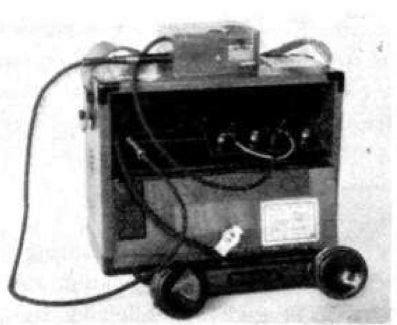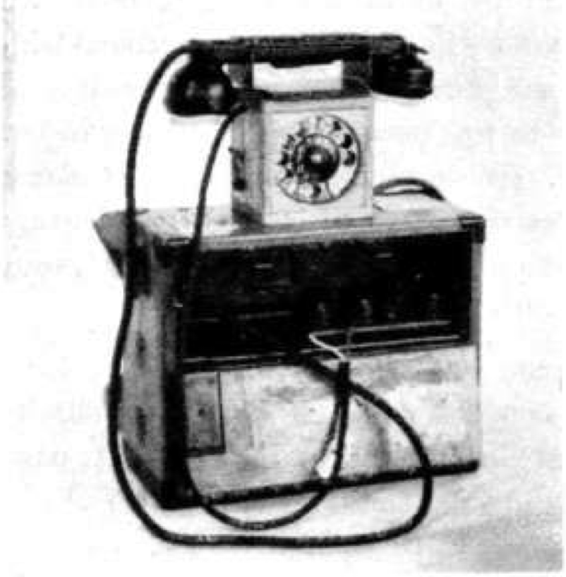 The device alongside a small 6 line field switchboard as pictured in "Over alle grenser" [5].
