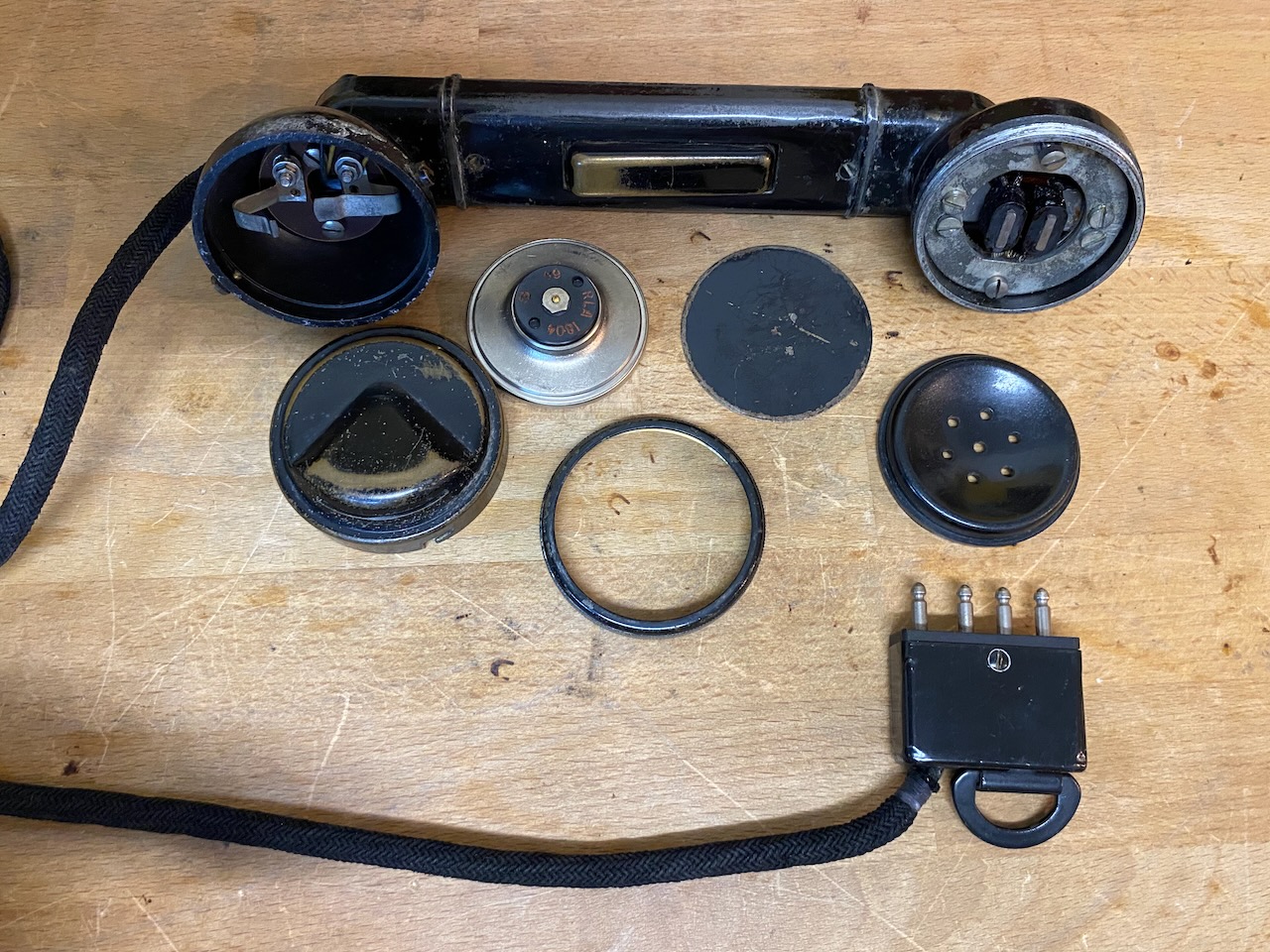 The transmitter capsule is an Ericsson type for local battery (as indicated by the ..04 [4]) made in 1949.
