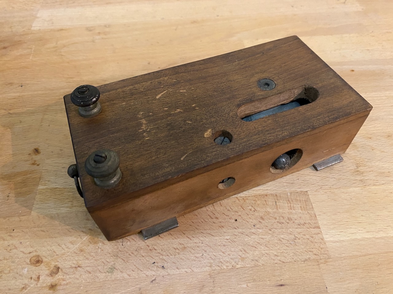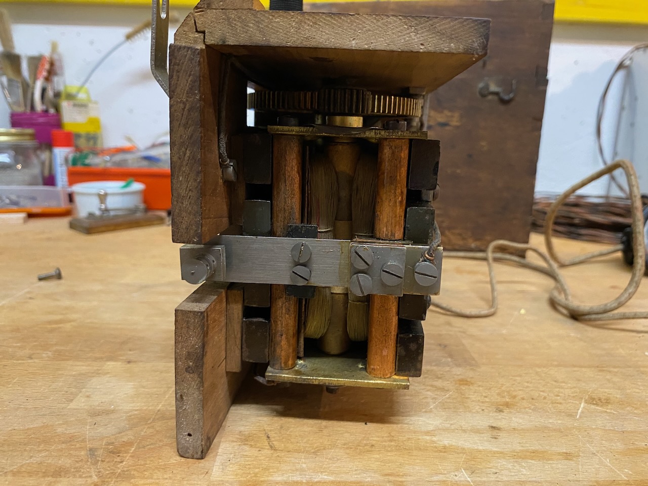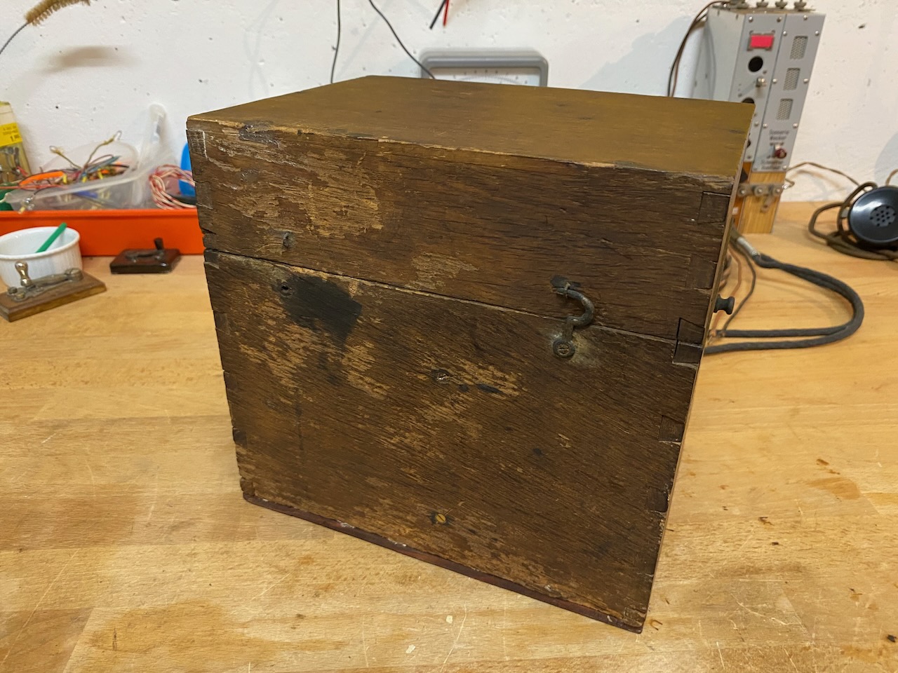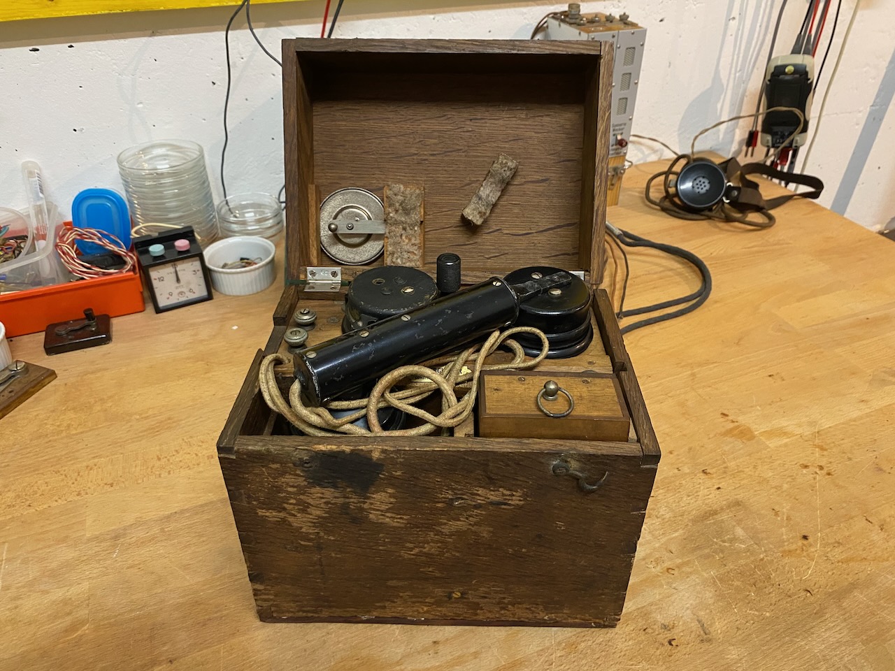 The magneto on this set can be used as normal magneto to generate a low frequency signal to activate polarized or vibrating ringers. An added buzzer circuit with a buzzer blade can be activated (using the black button) to generate a higher frequency signal which can be heard on far end receivers. This type of buzzer does not require battery power as other typical field phone buzzers of that era.