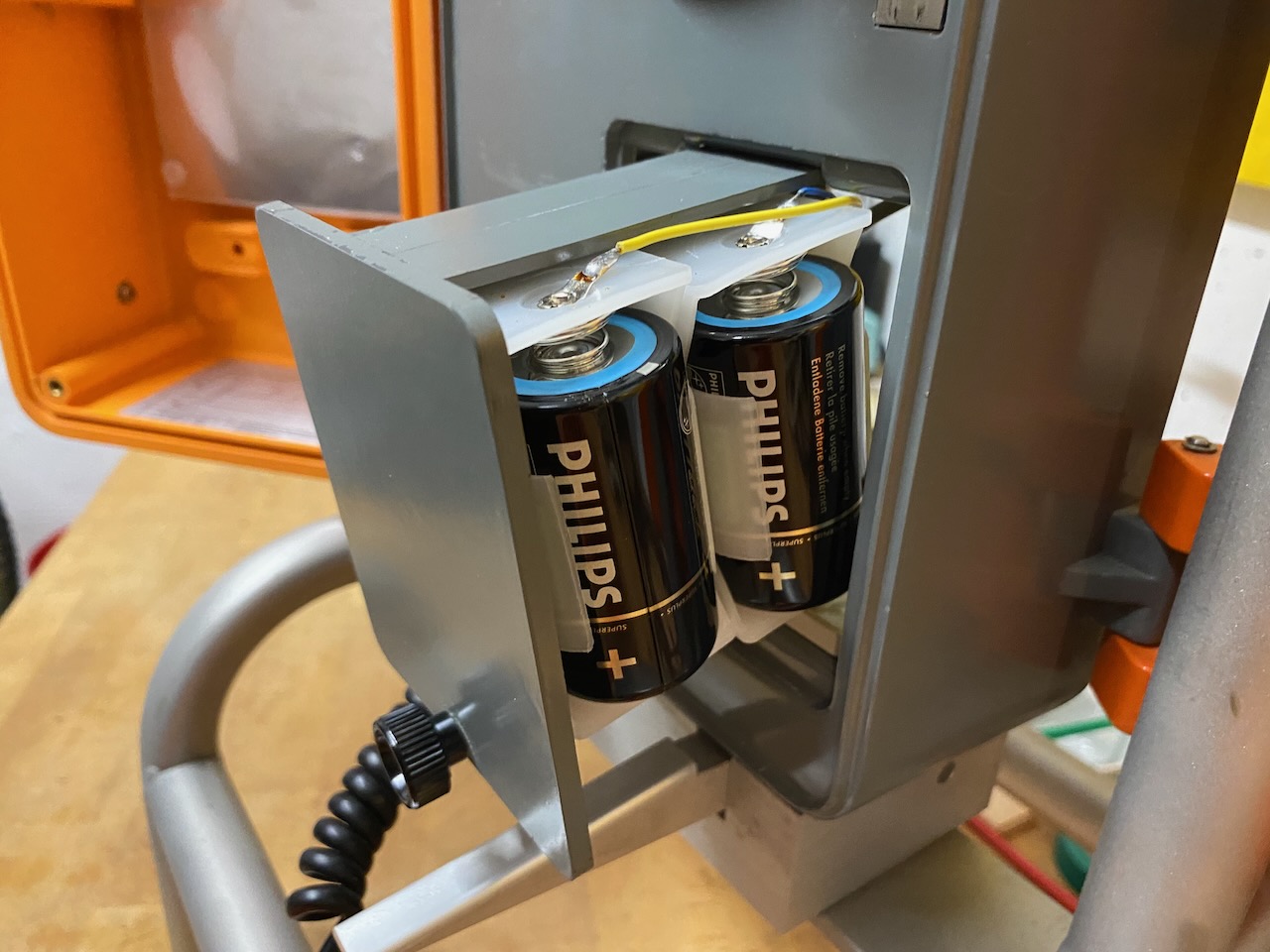 The connected cord has a Swiss railway line plug which can be connected to respective sockets which were available along Swiss railway lines.