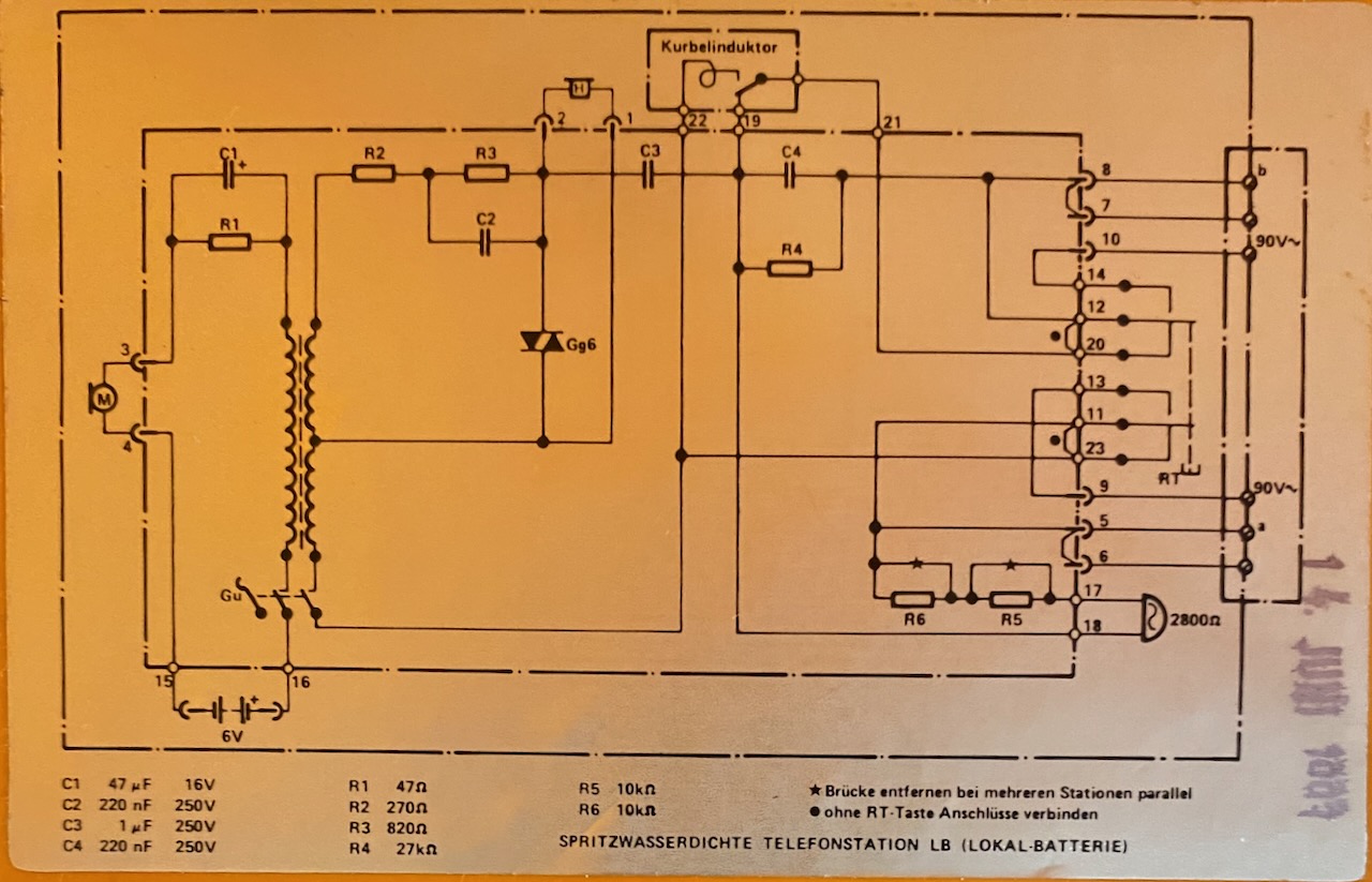 The call button could switch on an external calling power of 90V~, the outside connections for this are not provided on this model though.