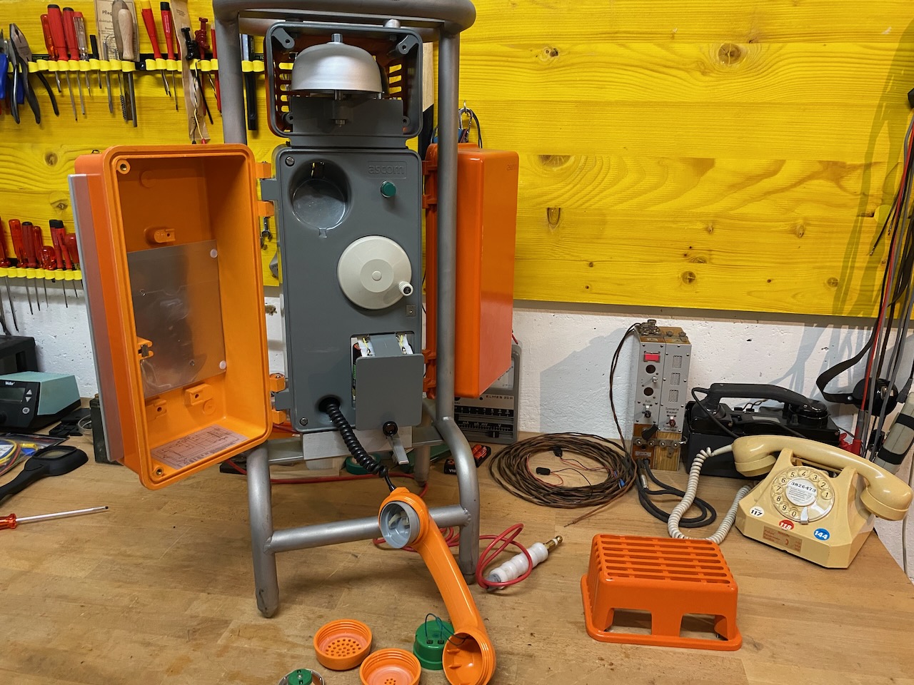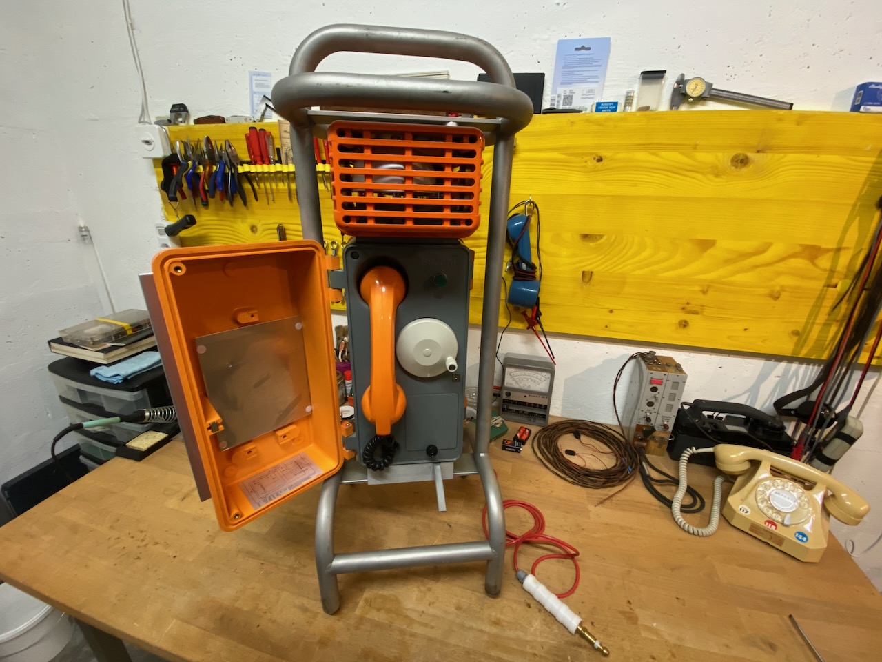 This railway linemen telephone was made by "Ascom" (Fusion of former Swiss Telecom equipment manufacturers Autophon, Hasler and Zellweger) in the early nineties and used for a short time (before being soon replaced by GSM phones) on SBB and probably also other Swiss railway systems. It is very heavy duty, weather protected and I assume has been mainly used in combination with construction work along lines. The same devices seems to have been used also for fix installed telephones along some railway lines.