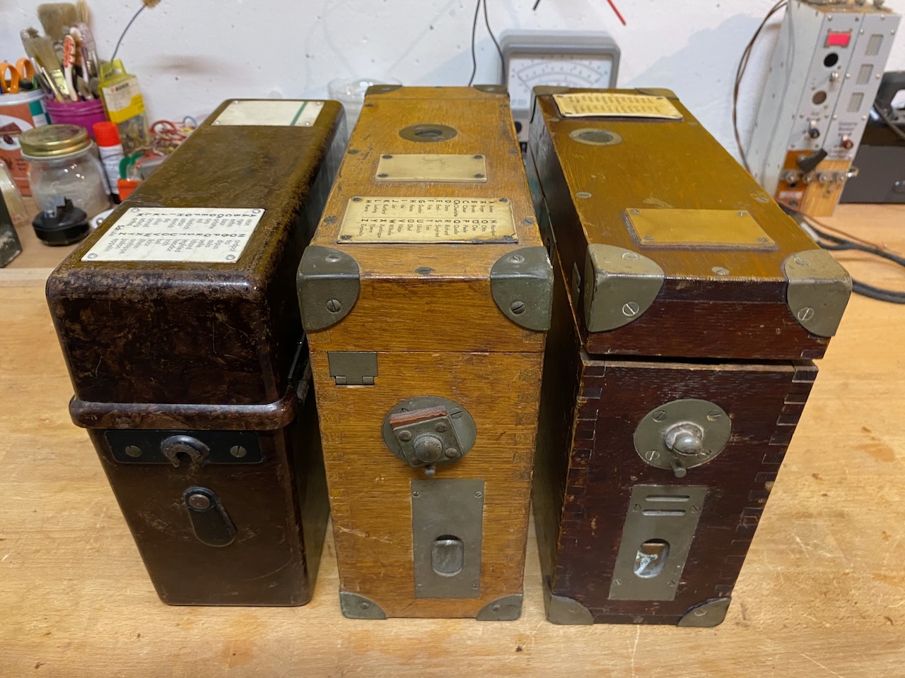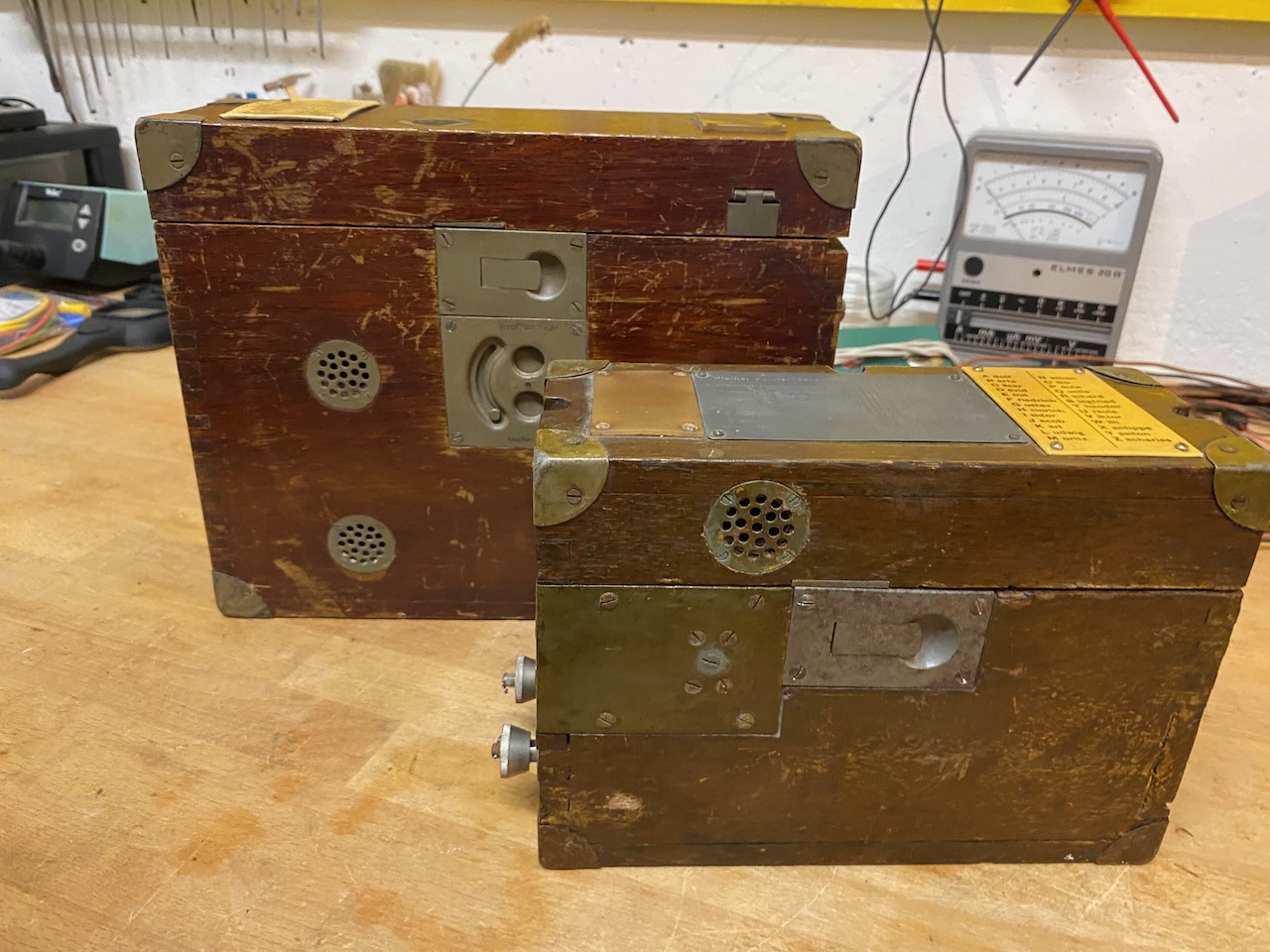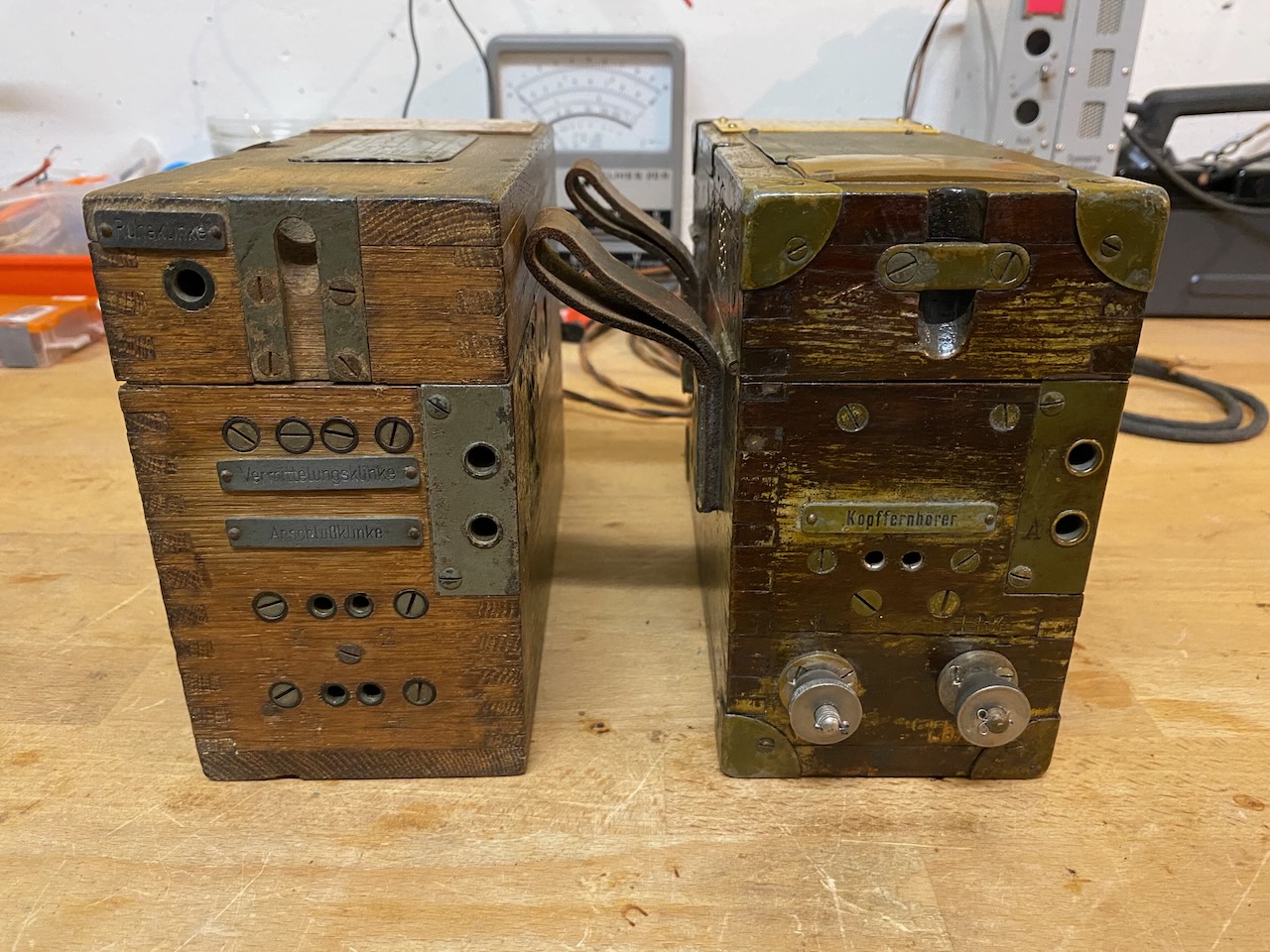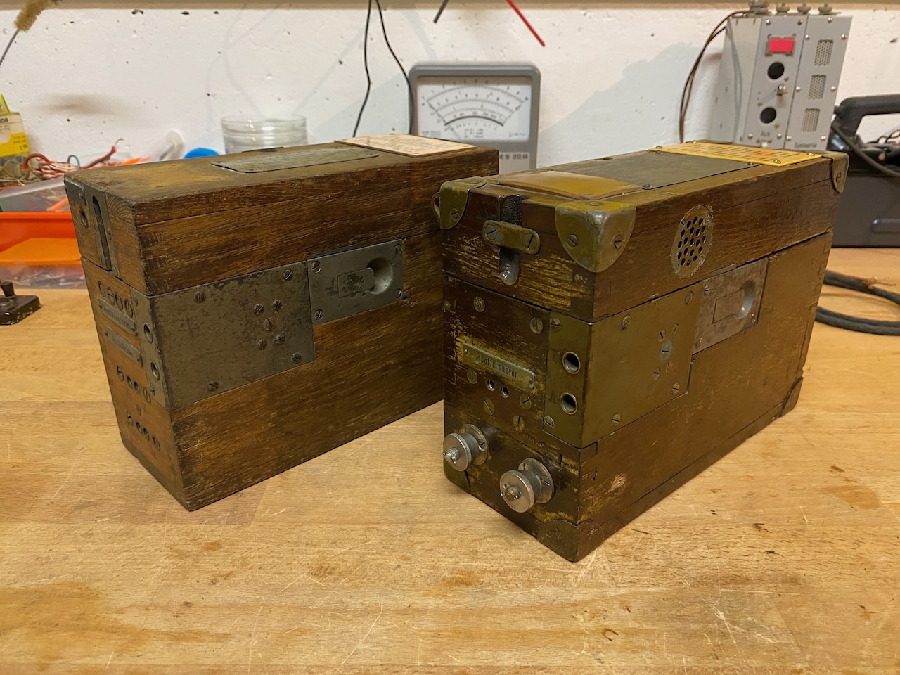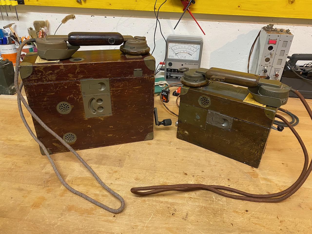 kleiner Feldfernsprecher 17 (right) compared to the Feldsprechbatterie 16 (left).