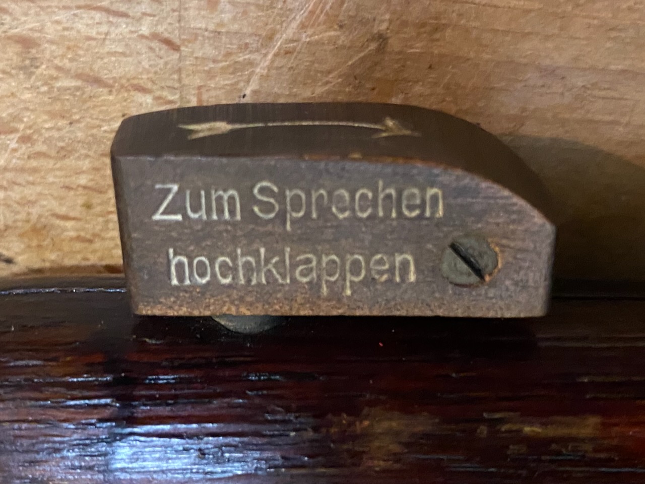 "Zum Sprechen hochklappen", fold up to speak.