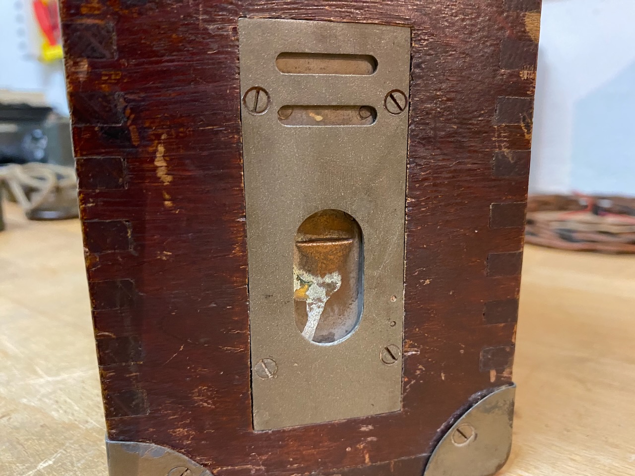 The magneto crank hole is covered by a spring loaded moveable lid.
