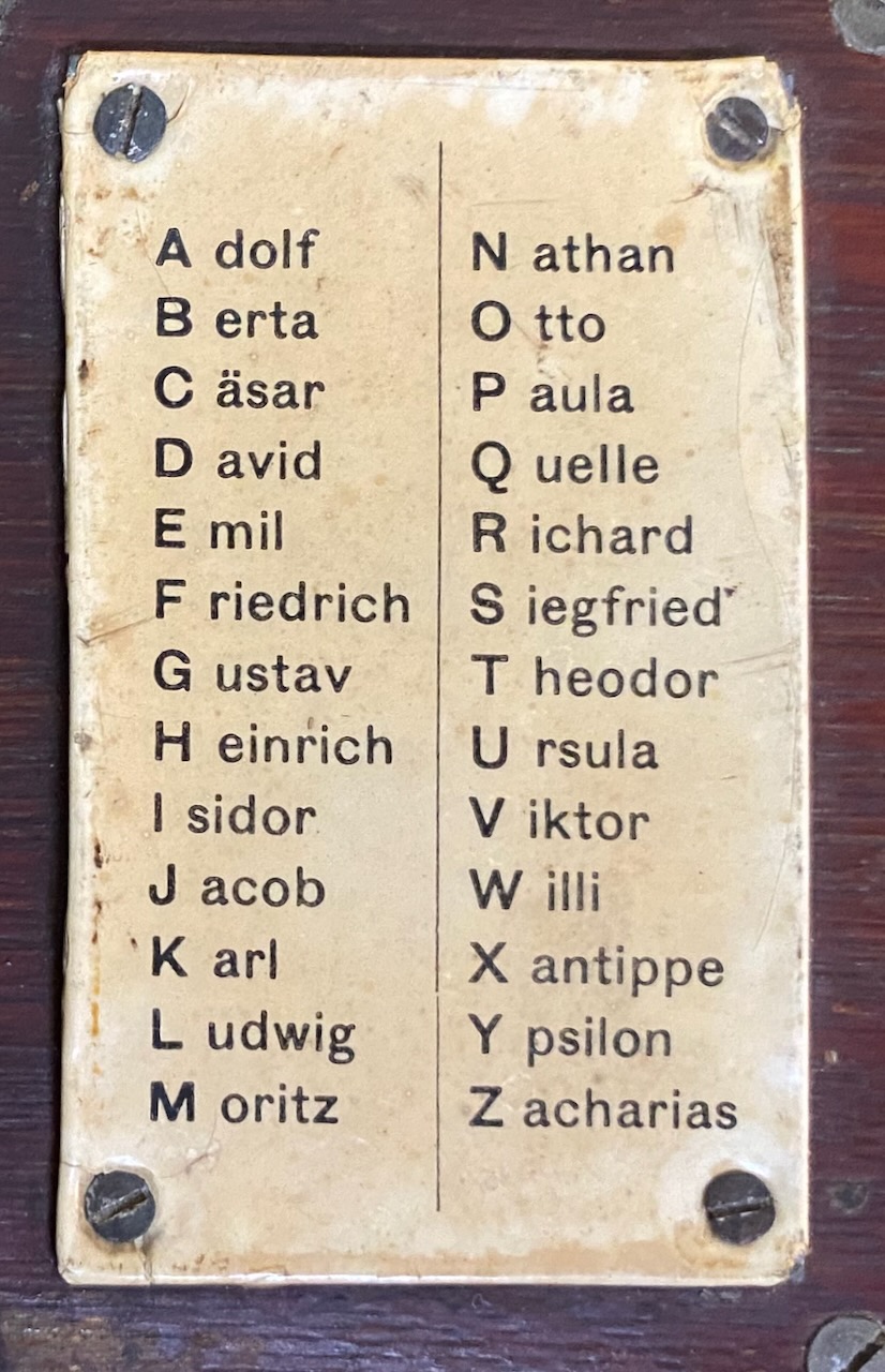 With a pre 1933 spelling alphabet in very good condition, probably a replica.