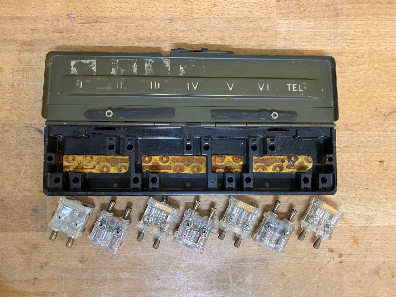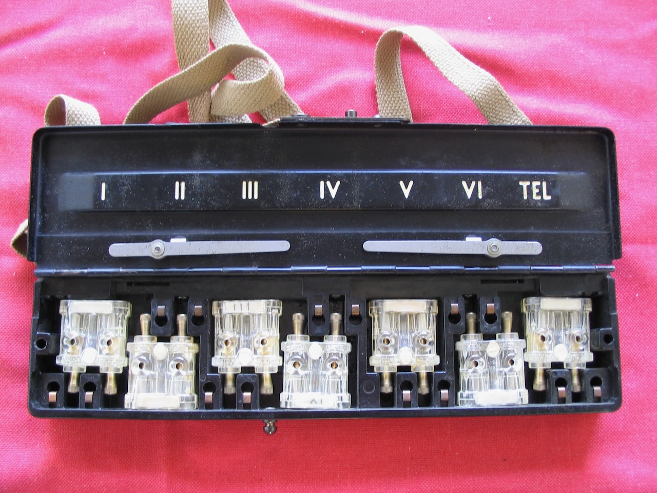 This extremely simple and lightweight U.S. Signal Corps switchboard was first introduced as the SB-18/GT in 1945, with the accompanying adapter plug U-4/GT possibly appearing as early as 1944 [2]. In 1960, the SB-18/GT and U-4/GT were replaced by the SB-993/GT and U-184/GT due to the use of radioactive luminescent material on the U-4/GT adapter plug. The newer models omitted luminescent labels in order to “aid in removing the radioactive items from the field and from the supply system” [7]. The equipment continued to be mentioned in regulations until the mid-1980s [10], but no longer appeared in documents from the 1990s [11].